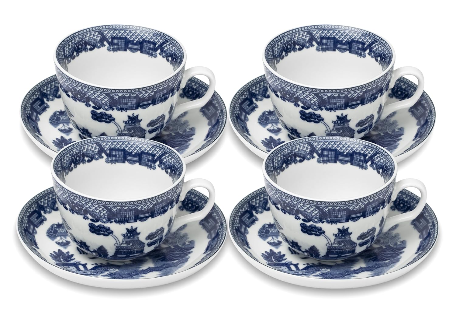 HIC Blue Willow Cup and Saucer, Set of 4CHECK PRICE